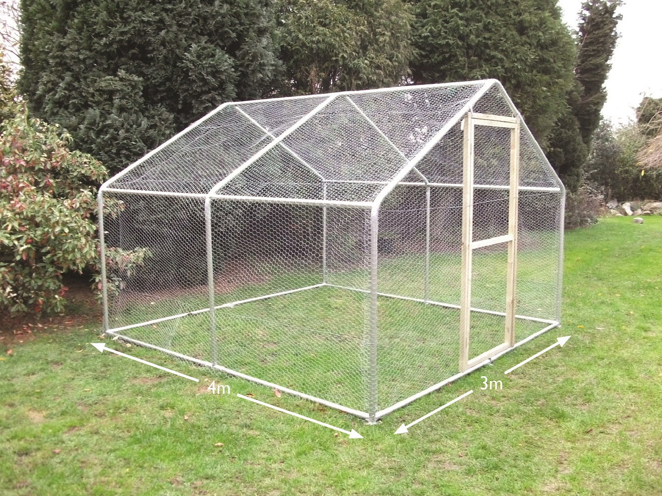 Our very popular 3m x 4m chicken run is often ordered for dogs, cats, and rabbits as well as poultry. This excellent enclosure allows your animals to get plenty of fresh air and freely stretch their legs whilst preventing them from wandering off.