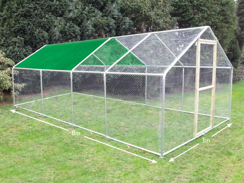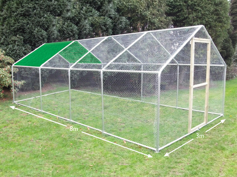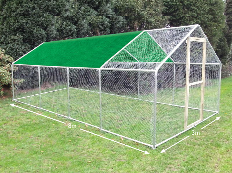 This large chicken enclosure spans 3m x 8m and provides approximately 260 square feet of safe and secure living area for your birds, cats, other animals, or even fruit and vegetables.